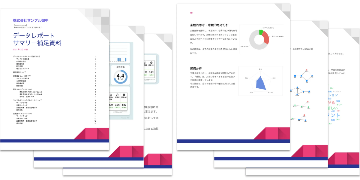 サービス詳細、導入事例、データ分析レポートのサンプルをまとめました。