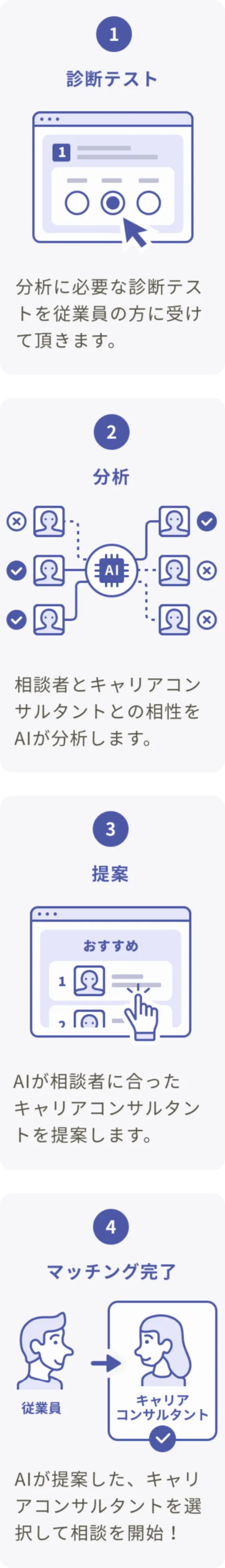 相談者は、AIが分析・提案する10名のキャリアコンサルタントから